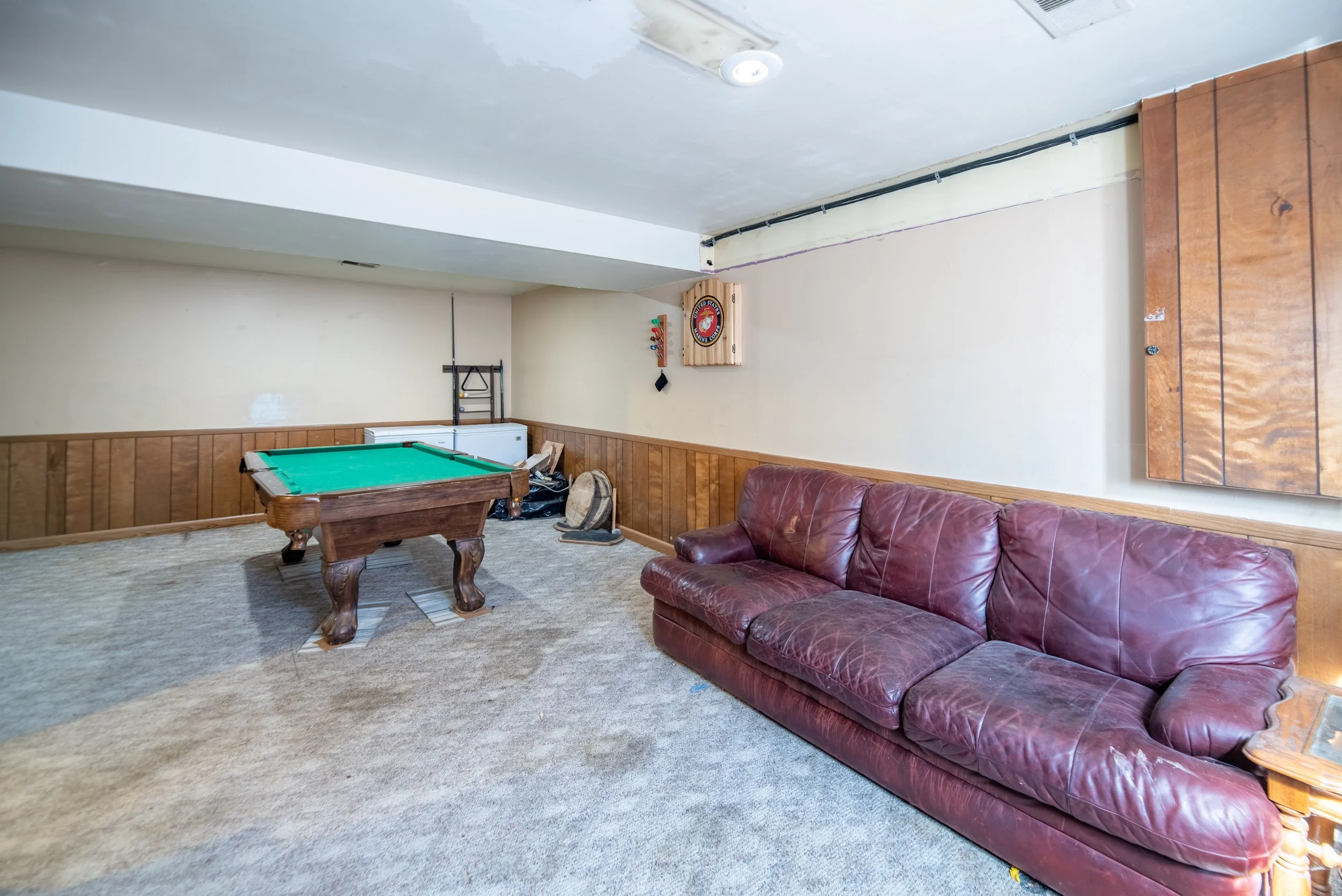 Downstairs, discover a finished lower level complete with a rec room, half bath, and a flexible all-purpose room — with drywall already in place behind the paneling, ready for your finishing touches! Enjoy the convenience of an extended driveway leading to a 23x22 detached garage with an additional workshop space, ideal for hobbyists or extra storage. Nestled in a quiet cul-de-sac just minutes from dining and shops, this property is spacious, full of character, and waiting for your personal touch!